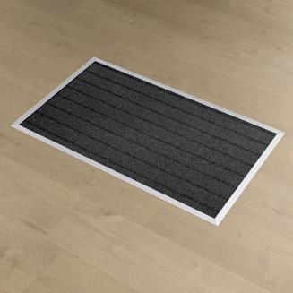 Uitneembare donkergrijze deurmat in een zilverkleurig frame. Elegante manier om stof en vuil buiten te houden.