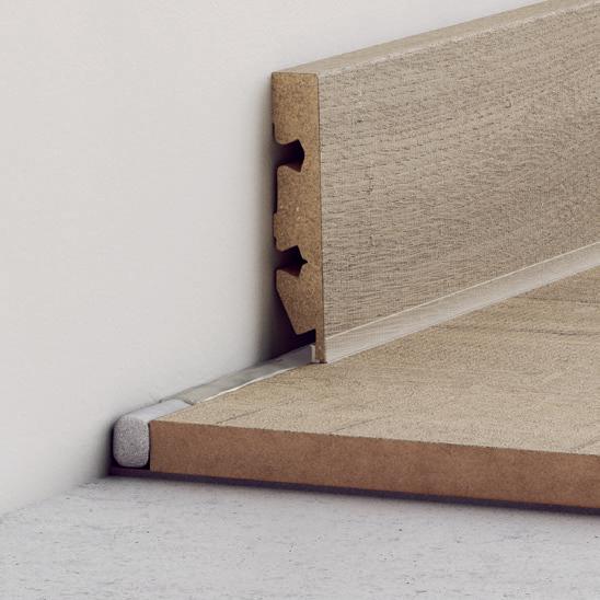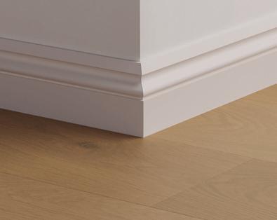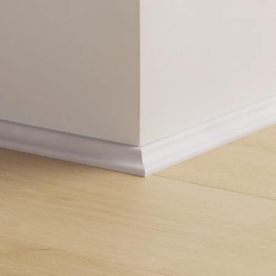 Rodapé pintável, ideal para colocar sobre o rodapé existente — perfeito para renovações. Ajustável em quatro alturas, entre 68 e 129 mm.