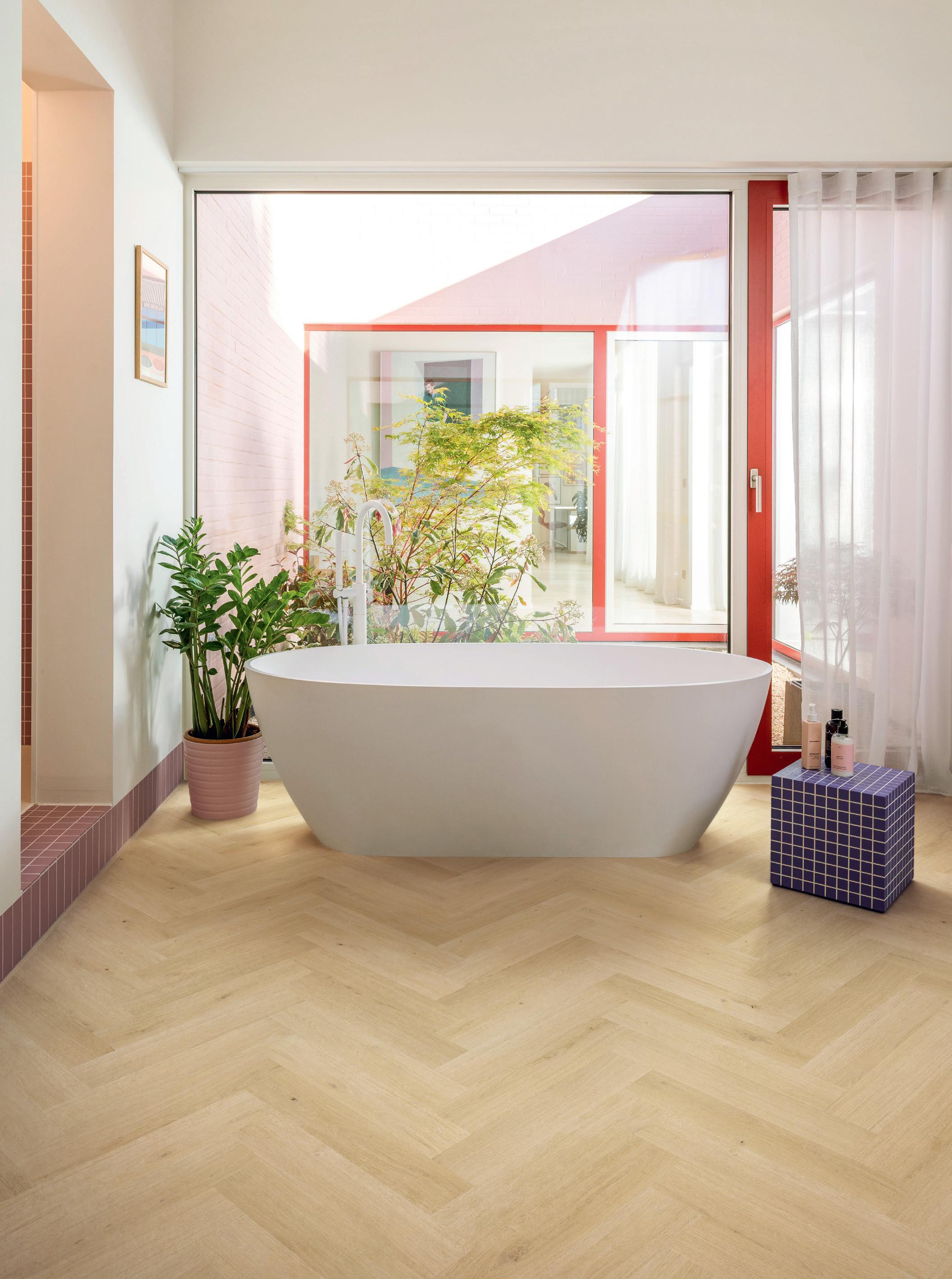 Deixe que as cores e o design ousados sobressaiam usando pavimentos claros