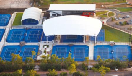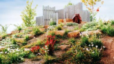 himself. The team focused on creating mass garden beds planted densely with feature trees and shrubs, designed to help soften the large mass of the facility. These gardens provide much needed greenspace for the staff and players.