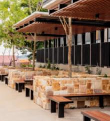 club. Super-sized boulders from Fleming’s quarry partners in Yea are spread throughout the surrounding garden beds, while a life-sized bronze statue of Michael Long stands at the top of the stairs to welcome visitors.