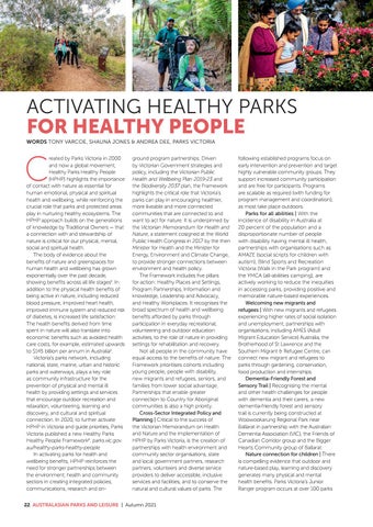 ACTIVATING HEALTHY PARKS FOR HEALTHY PEOPLE WORDS TONY VARCOE, SHAUNA JONES & ANDREA DEE, PARKS VICTORIA