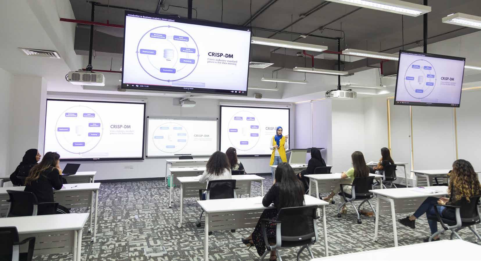 La rápida adopción de la tecnología por parte de los EAU y su condición de centro neurálgico de la transformación digital implican que los estudiantes deben ser tecnológicamente competentes. Los programas de negocios de los EAU están integrando cursos de tecnología avanzada en sus planes de estudios, que abarcan desde el marketing digital hasta el análisis de datos y la inteli-