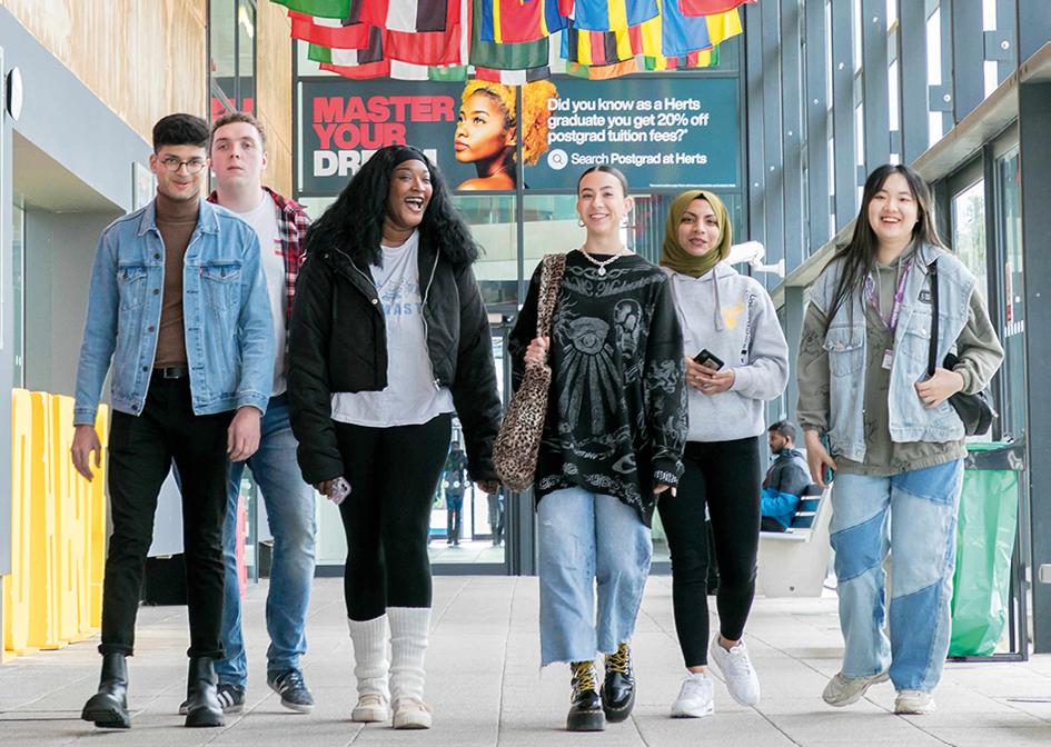 2 Achievements & successes 4 Where to find us 6 Why choose Herts? 8 Message from the Vice-Chancellor 9 Message from the Deputy Vice-Chancellor 10 Our campuses 16 Campus facilities 18 Course facilities 20 Student life 24 Social spaces 26 Postgraduate experience 28 Accommodation 32 Support on campus 36 Scholarships & fees 38 Schools of study 39 Business 40 Creative Arts 41 Education 42 Health & Social Work 43 Law 44 Life & Medical Sciences 45 Physics, Engineering & Computer Science 46 World-leading research 48 Courses 49 Business 50 Creative Arts 53 Education 53 Health & Social Work 54 Law 54 Life & Medical Sciences 56 Physics, Engineering & Computer Science 58 Pre-sessional English 60 Applying to Hertfordshire