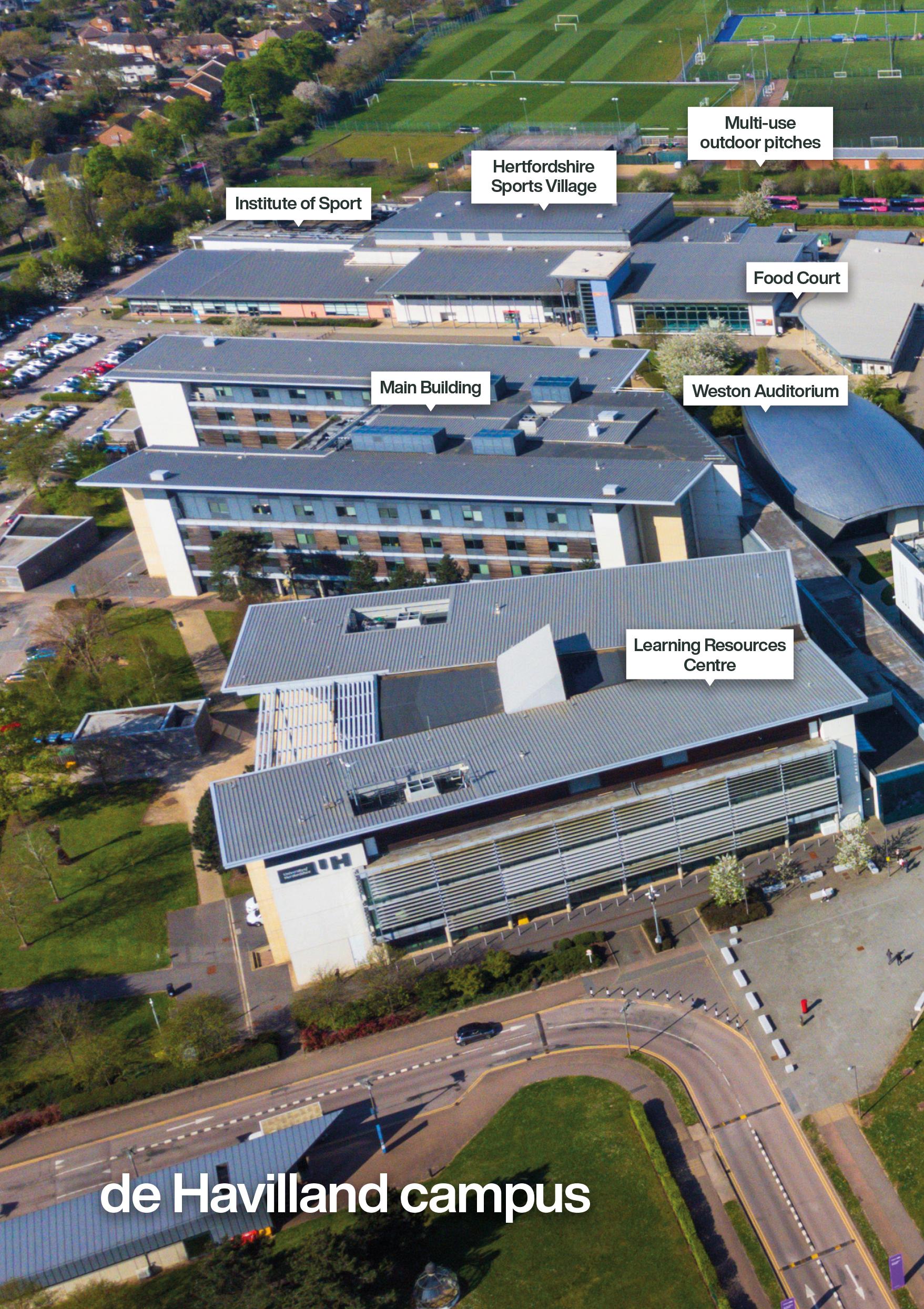 We have two vibrant main campuses, College Lane and de Havilland. They are just a short 20-minute walk apart, or you can use our free shuttle bus to get between campuses. Accommodation is available on both campuses.