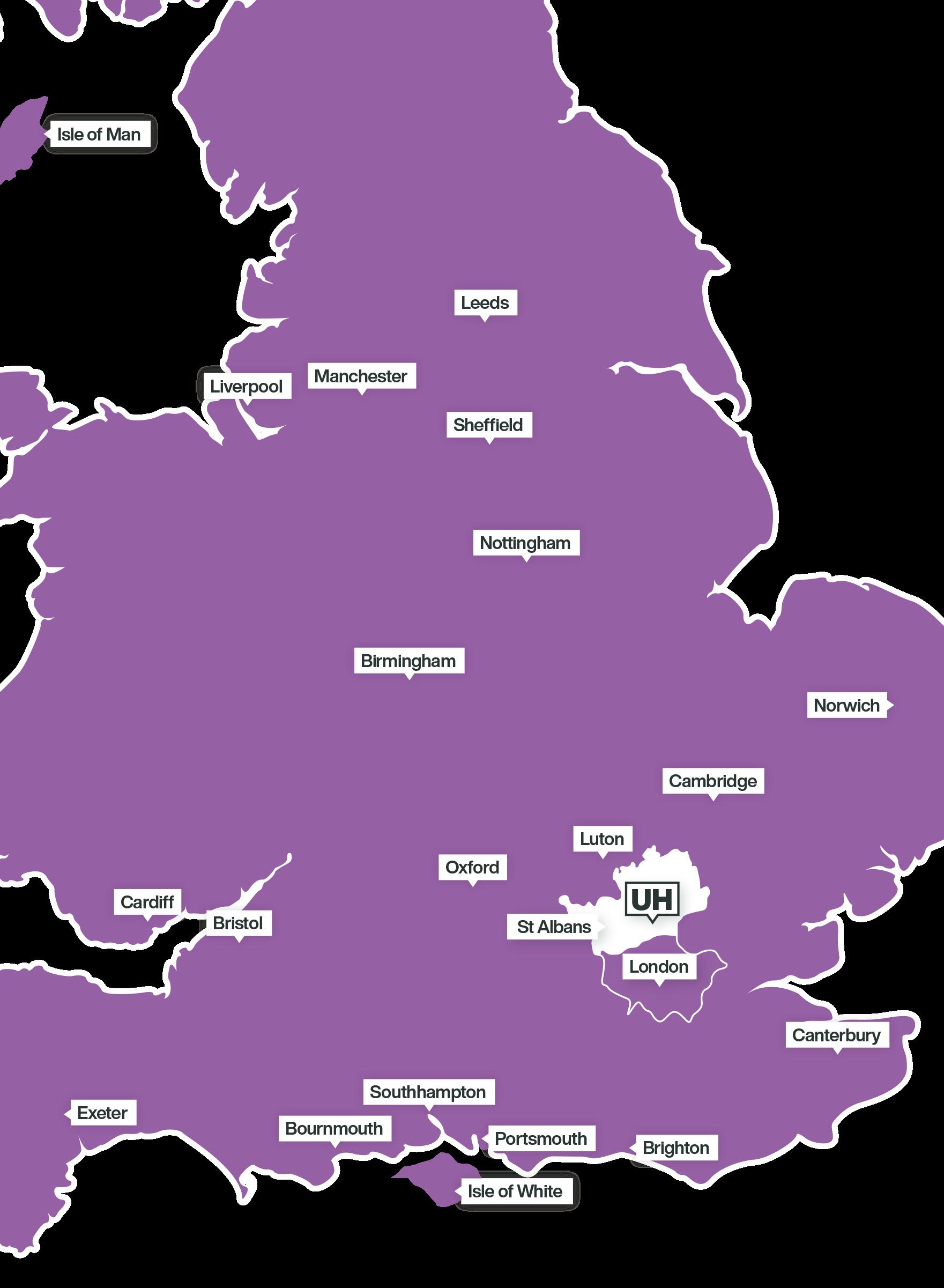 The University of Hertfordshire’s welcoming, modern campus is in the town of Hatfield in Hertfordshire, in the East of England. Hatfield is just a short 25-minute train ride from London King’s Cross station and not far from the A1(M); one of the UK’s major north-south motorways.