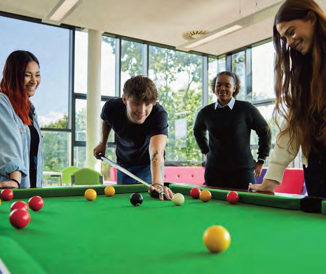 Students love the vibrant community atmosphere and the convenience of having everything in one place. From social learning spaces to the library, cafes, bars, and places to meet friends – it's all here. Our Halls of Residence, home to students from across the UK and the world, will simplify your daily life and studies.