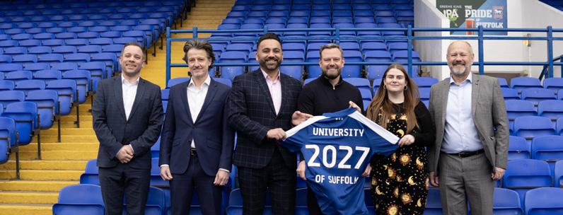In February, we became the Official University Partner for ITFC. Agreed for an initial threeand-a-half years, the partnership includes unique opportunities for students to get involved in placements at the club, and visitors to Portman Road will have noticed the highlyvisible presence of our brand.