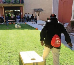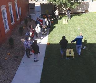 City Mission residents enjoyed a feast, and then they played some games in the dining hall and wrote out the things they are grateful for. After that, everybody went outside to have some pumpkin-themed fun: Pumpkin carving, Pumpkin Golf, and Pumpkin Bowling. The residents also played some horseshoes and cornhole on a beautiful, sunny fall afternoon.