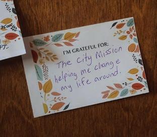 Recently the City Mission celebrated their annual Harvest Party, complete with a pumpkin pie eating contest (which was won by resident, Rob) and a Wall of Gratitude.