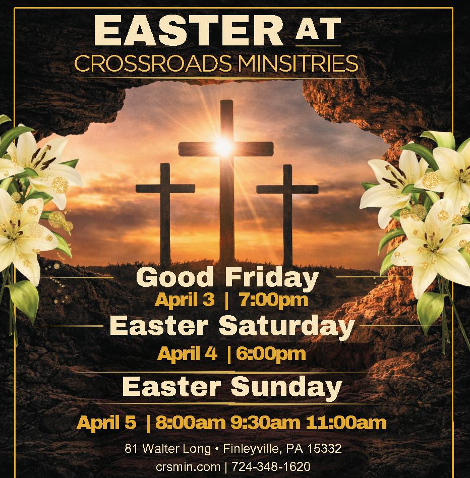 EASTER EGG HUNT - Thomas Presbyterian Church invites everyone to join us for an Easter Egg Hunt on Sunday, March 22. The festivities will begin at 12:30PM. In addition to the egg hunt, we will be serving hamburgers and hot dogs for all attendees. Please remember to bring your own basket or container to collect the eggs during the hunt. The event will take place at Thomas Presbyterian Church, located at 1068 Linden Road, Eighty Four, PA. If you have any questions about the event, call 724-941-8910.