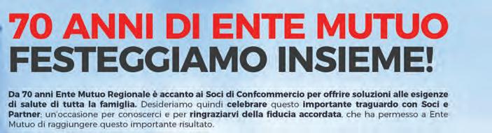 Confcommercio Milano, Lodi, Monza e Brianza ha compiuto 80 anni. Celebrazione con un affollato evento istituzionale il 24 ottobre nella sala Orlando di Palazzo Castiglioni, in Confcommercio Milano; realizzazione di una mostra sugli 80 anni allestita a Palazzo Bovara, il Circolo del commercio di Confcommercio Milano, aperta al pubblico nel weekend del 25 e 26 ottobre; iniziativa, promossa dal Club Imprese Storiche, che, sabato 25 ottobre, ha coinvolto oltre 30 attività storiche milanesi in eventi aperti ai cittadini. Il 10 e 24 novembre l’80esimo viene celebrato a Monza e Lodi (ne parliamo nel prossimo numero).