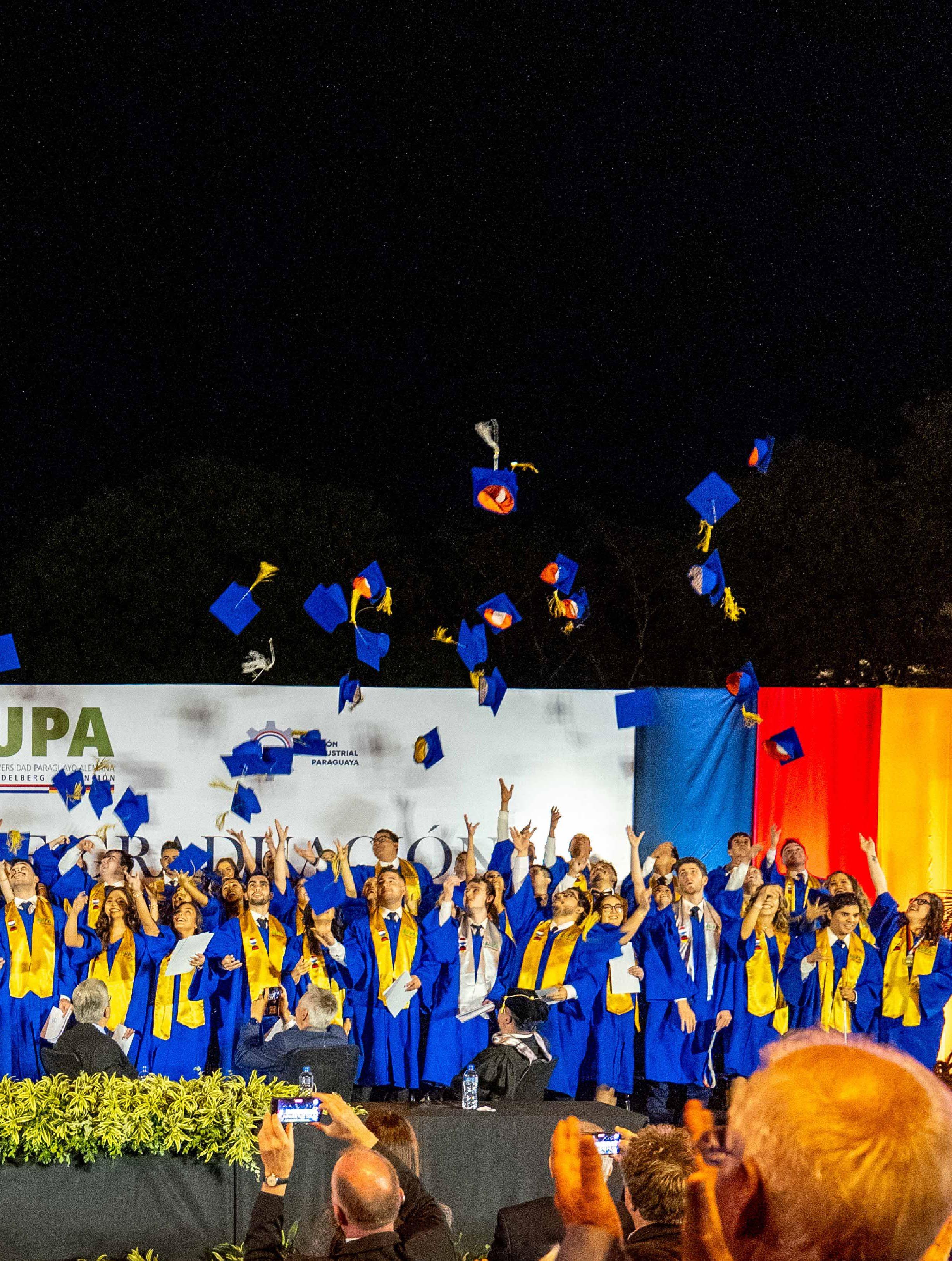 Quiero agradecer a todos los padres por habernos confiado la formación de sus hijos. El título paraguayo y el título alemán son válidos en todo el mundo, y eso representa una puerta invalorable para su desarrollo profesional. A ustedes, como egresados, se les abren puertas donde sea que vayan.