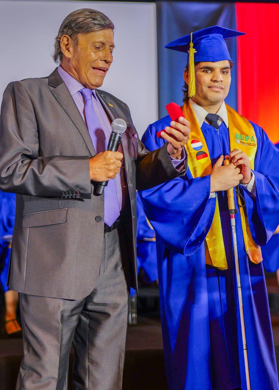 • Jesús Adrián Barrios Chamorro recibió una mención especial y la medalla de oro por su perseverancia, esfuerzo y superación, siendo además el primer egresado con discapacidad visual en la historia de la UPA.