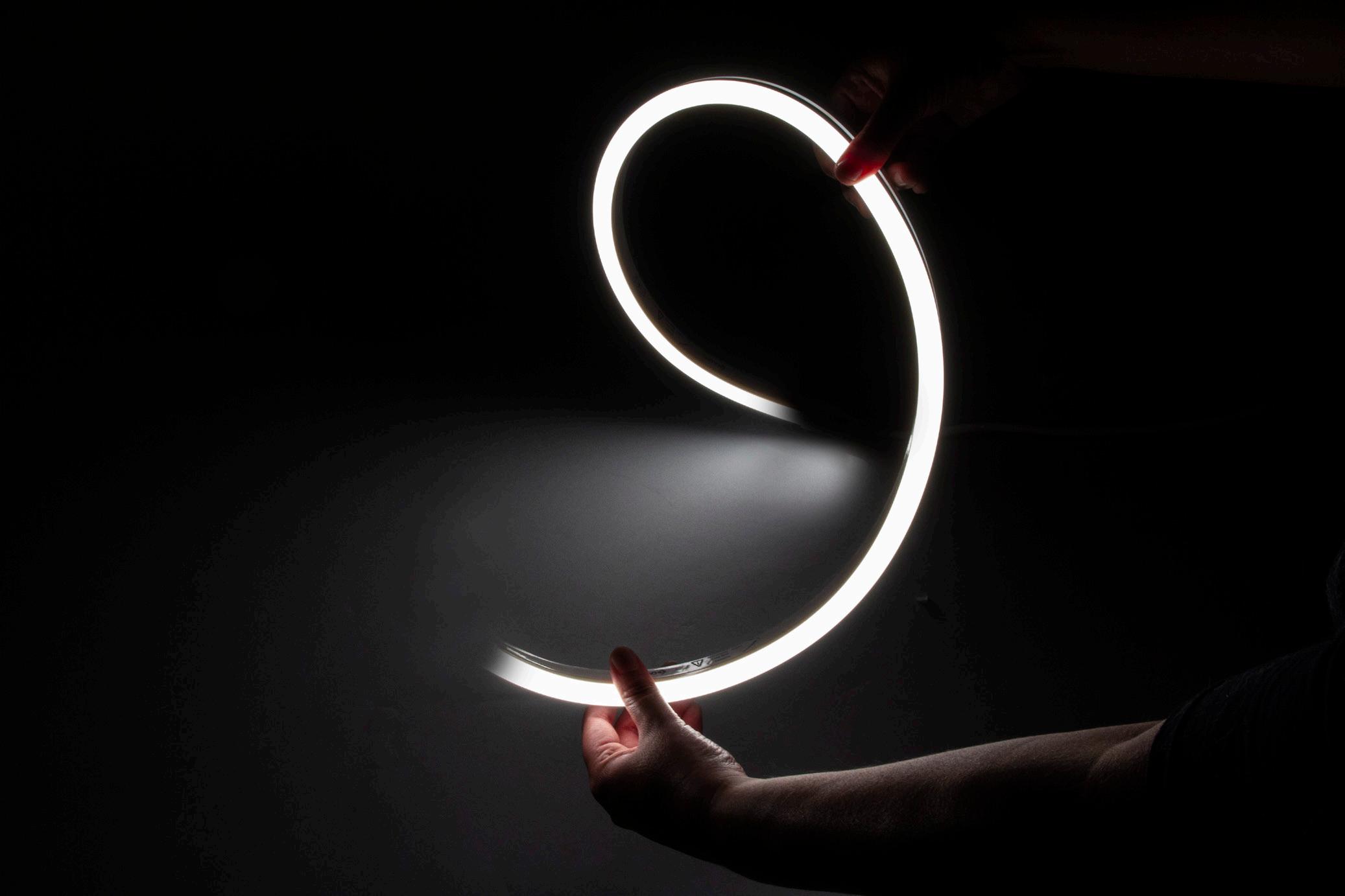 A 24VDC high transmission, flexible linear ‘neon’ tape that is field cuttable and joinable. Designed for applications that require ultra-rich light and color saturation that is characteristic of neon. SideFlex enables horizontal bending that conforms tape around curvilinear surfaces.