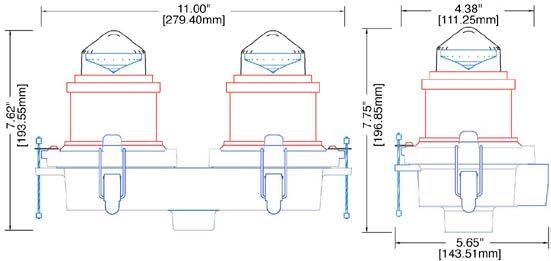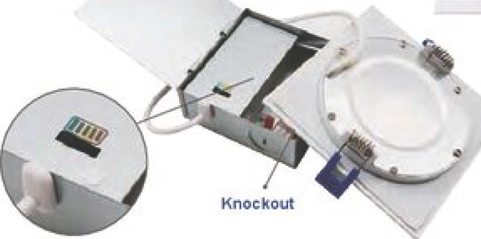 Junction Box: Pre-wired junction box includes quick connect to LED fixtures for ease of installation. Junction box includes two 1/2 " and two 3/8 " knockouts and snap on cover. Maximum of 4 No. 12 AWG through branch circuit conductor suitable for 90°C permitted in box. [Fixture wire length: 6" and Junction box wire length: 10"]