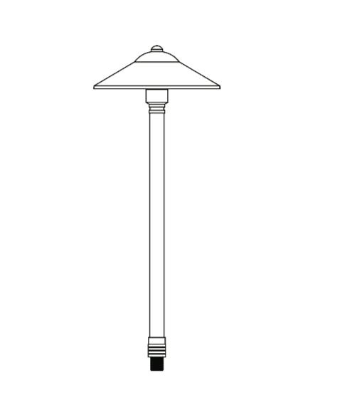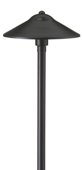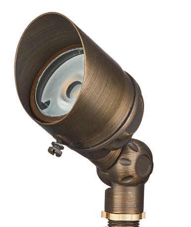 The Zen path light features a 6.3-inch-diameter cast brass hat. Its underside is a powder-coated reflective white surface. Impact-resistant clear or frosted lens options.