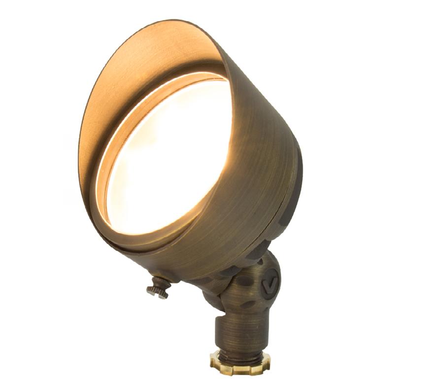 Elevate your outdoor lighting game with the sleek and stylish VOLT® Fat Boy Mini Brass Spotlight in Black. Boasting a slim and shortened profile with an extended glare guard, this spotlight makes bulb replacement a breeze and is perfect for customers seeking reliable and budget-friendly landscape lighting solutions.
