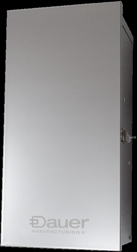 Stainless steel housing and removable hinged swinging door with lockable latch. Pre-punched bottom and side panels.