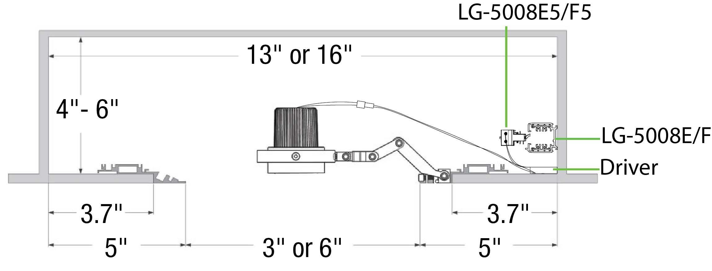 Housing: 0.040” Aluminum shallow housing with patented driver assembly, allows for driver to slide out without tools. Housing can be installed in 1/2" ceiling thickness, an extension collar is available for ceiling thickness up to 2", must specify NIO-1EXTC2.