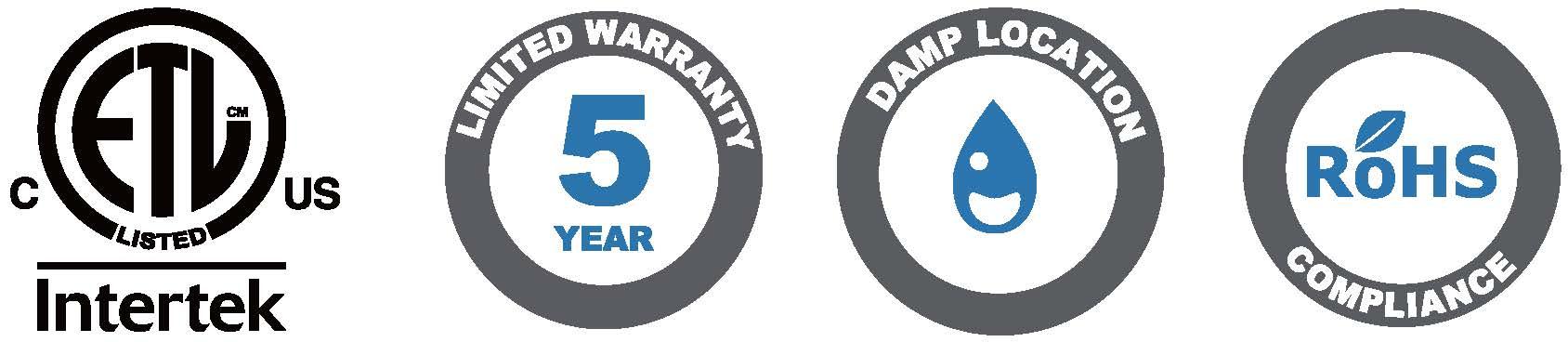 c ULus Listed for Damp Location (Wet Location when used with compatible reflector)