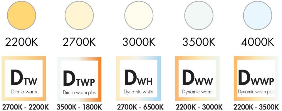 Comfort Dim: Comfort Dim color tunes the temperature from a bright 3100K (800lm) or 3000K (HL), to a romantic and comfortable 2000K on a gradual, even curve. Available in 800lm or HL (1500lm-2500lm).