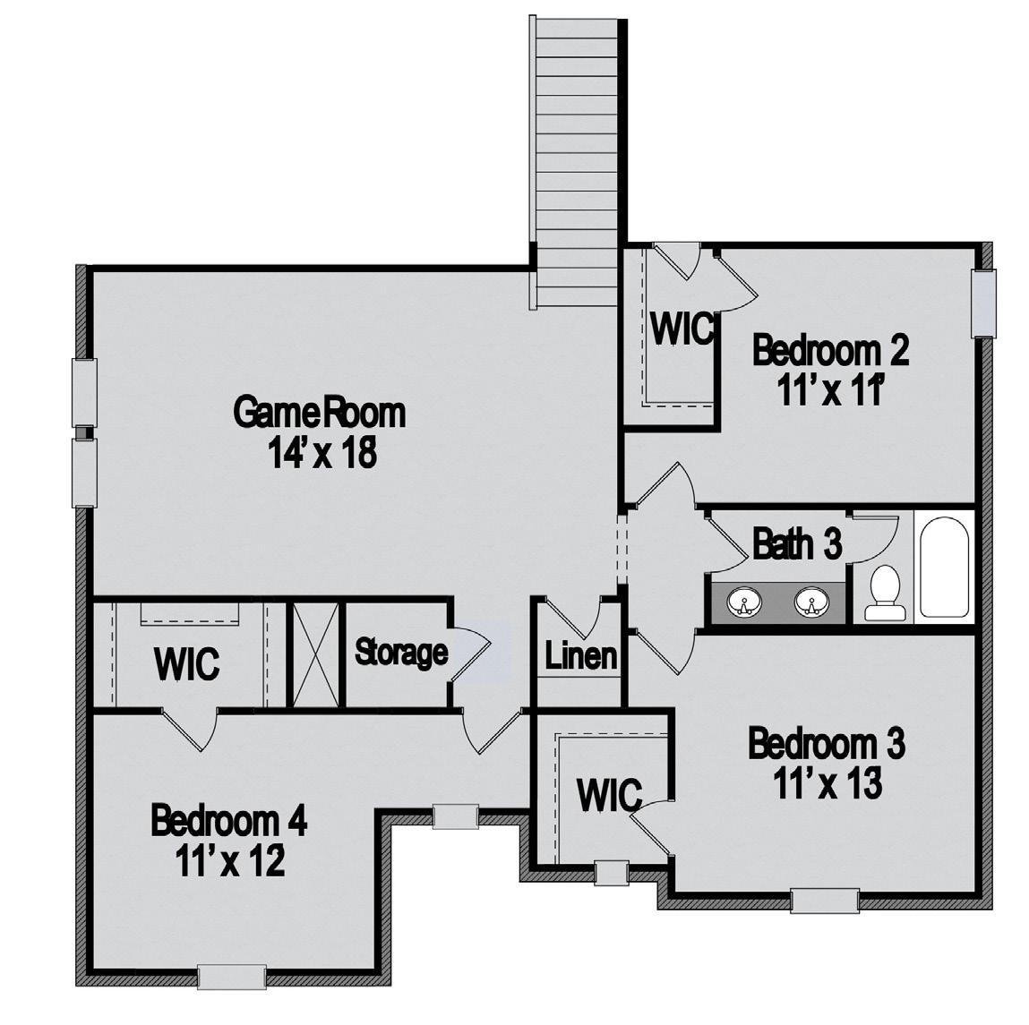 The open and very versatile floor plan of the Trinity is perfect for a dynamic lifestyle - the ideal design for raising a family or entertaining. This home’s large family room is well-suited for relaxing: it includes a vaulted ceiling open concept living to the kitchen. The foyer opens to an elegant staircase and a spacious flex room. The kitchen features a center island, a walk-in pantry and an adjacent breakfast area. Off the open living room, the lavish primary bedroom suite features a large room with a sloped ceiling, a roomy walk-in closet and an exceptionally large and luxurious bath with a Roman tub, separate shower, dual-sink vanity and private toilet area. Upstairs opens to an enormous game room with three additional bedrooms and a bathroom. Other highlights include a powder room off the foyer and a laundry room with a closet.