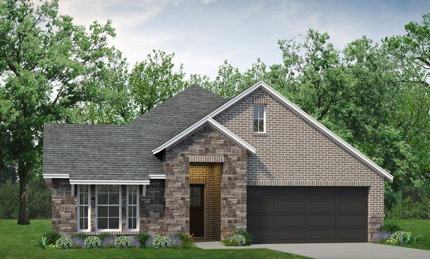 Well-designed contemporary living, indoors and out. The Brazos’s enticing covered porch and entryway open to the spacious great room and desirable covered porch beyond. The well-equipped gourmet kitchen is highlighted by a large center island with breakfast bar, a walk-in pantry and access to the dining room - the perfect layout for both formal and casual entertaining. The stunning primary bedroom is complete with a spacious walk-in closet and luxurious master bath, featuring, dual-sink vanity, separate tub, luxe shower and linen closet. The large secondary bedrooms share a well-appointed full bath. Additional highlights include a desirable flex room and a centrally located laundry room.