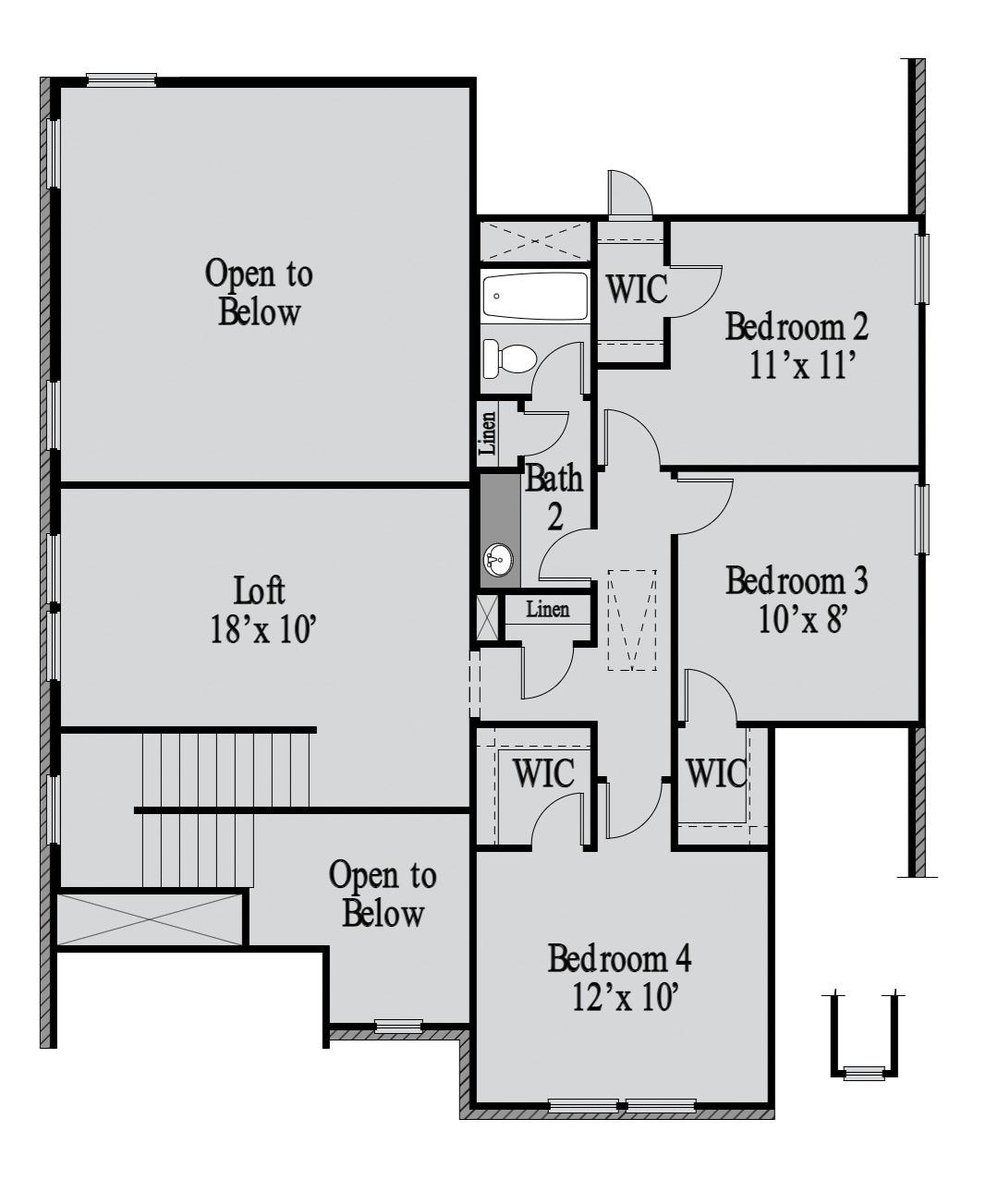 When you enter the Salado, you’re greeted by a large foyer adjacent to the open, two-story high family room and connected dining room, setting the stage for effortless entertaining. Plenty of windows in this home provide natural lighting throughout the open living spaces. The family room is adjacent to the sizable kitchen, which features a large center island and walk-in pantry. A private study is conveniently located when you enter the house. The large soaker tub is an eye-catching fixture in the sumptuous primary bath, featuring his and hers vanities and an enormous walk-in closet — a perfect accompaniment to the spacious primary bedroom. The Salado also includes added bonuses like a large loft, walk-in closets in all secondary bedrooms and an additional full-size bathroom upstairs.