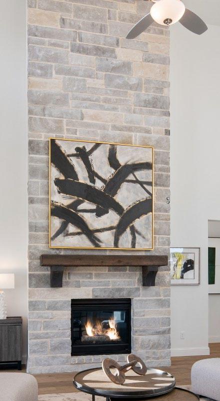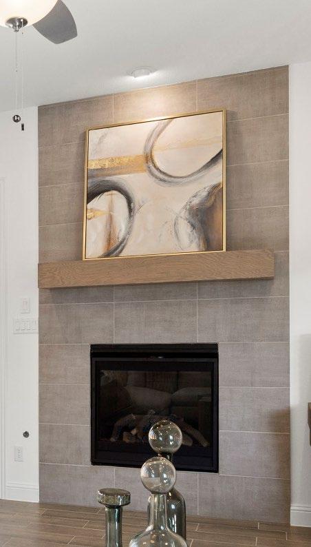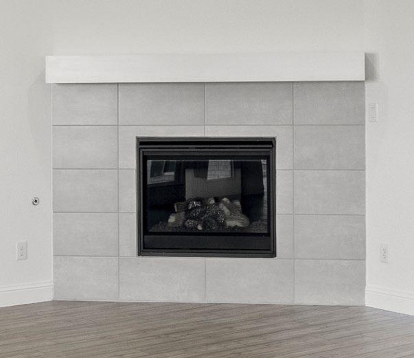 Fireplaces are based on community fuel type (gas vs. electric). Base Fireplace includes Level 1 tile, w/ painted mantle. All tile, brick and stone surrounds have a painted trim mantel included. The stained cedar mantel is an optional upgrade.