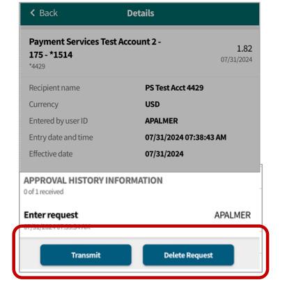 Next Scheduled Requests Displays transactions that the user is entitled that are scheduled to be sent at a future date.