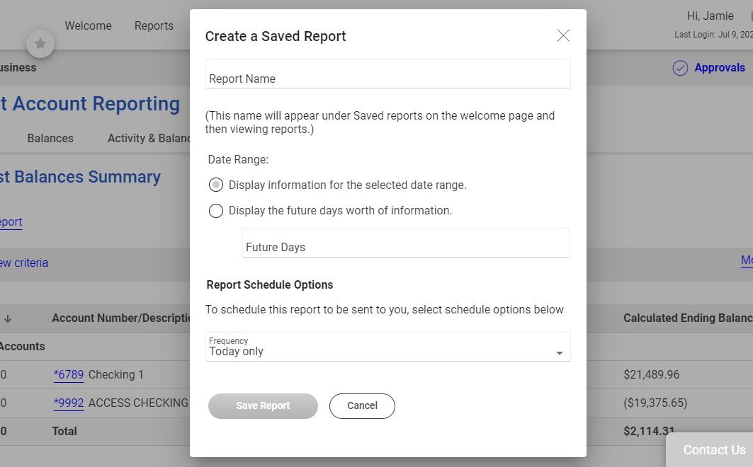 • If you already use the Business Service Tool’s Welcome Page Configuration page to show a company’s available balance information, that company’s users can select Available Balance to view that information.