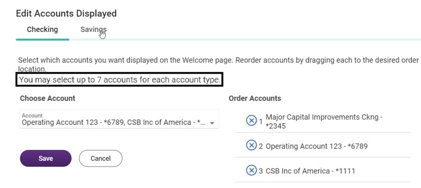 Users define what accounts are important to them by selecting Edit accounts displayed