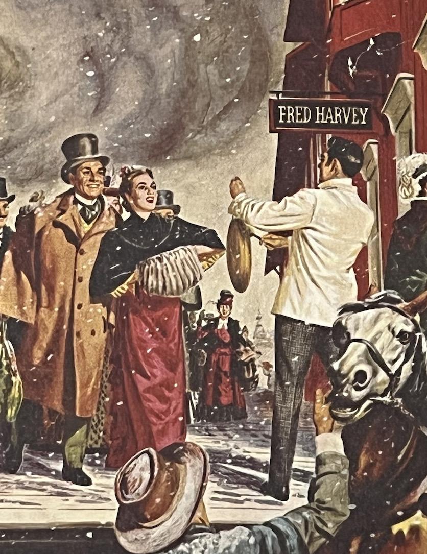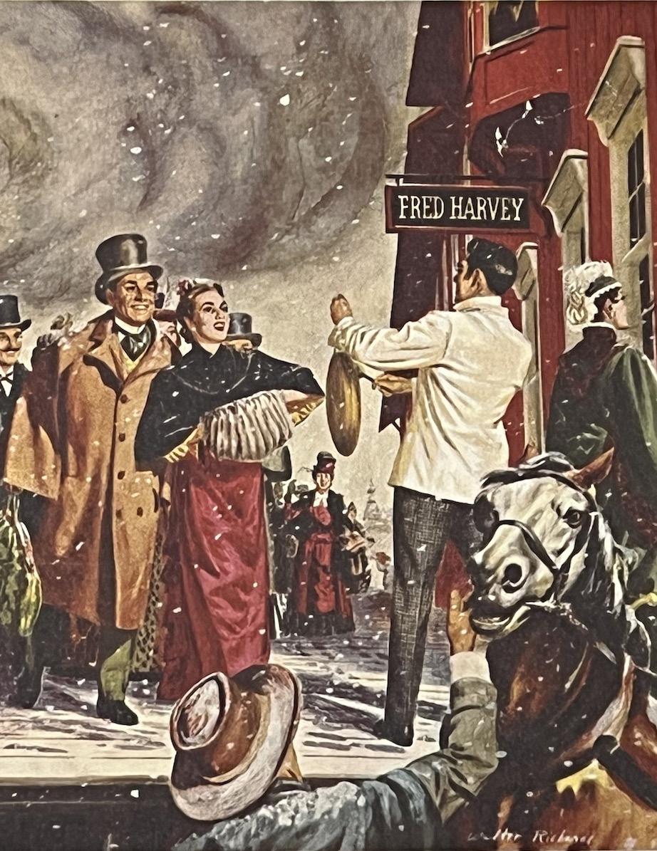 Hildreth Meière was often commissioned to create art that reflected the location or theme of her work, and she took special care with a project for her friends, the Harveys of the prolific Fred Harvey Family and hospitality business. Known for her thorough research, Meière reflected the significance of Westport Landing on the Missouri River, a key starting point for trips west in the late 1840s. Provisions were economical, with prices like corn and oats at 30 cents a bushel, 20% cheaper than in St. Louis. This made Westport Landing a hub for those journeying west. In 1936, Meière created three mural panels depicting the scenes of arrival, outfitting, and commerce at Westport Landing, highlighting its historical role in provisioning and its eventual merger with Kansas, forming Kansas City, Missouri. Learn more about the mural by visiting the touch screen kiosk at the top of the Grand Hall Staircase.