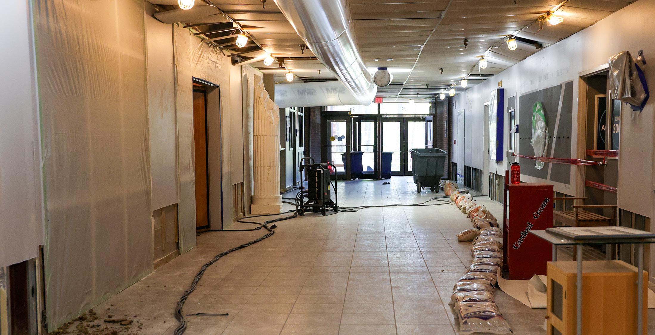 A weather event, likely a microburst carrying heavy rain and intense winds, caused major damage to the west end of Union University’s Penick Academic Complex (PAC) on April 3.
