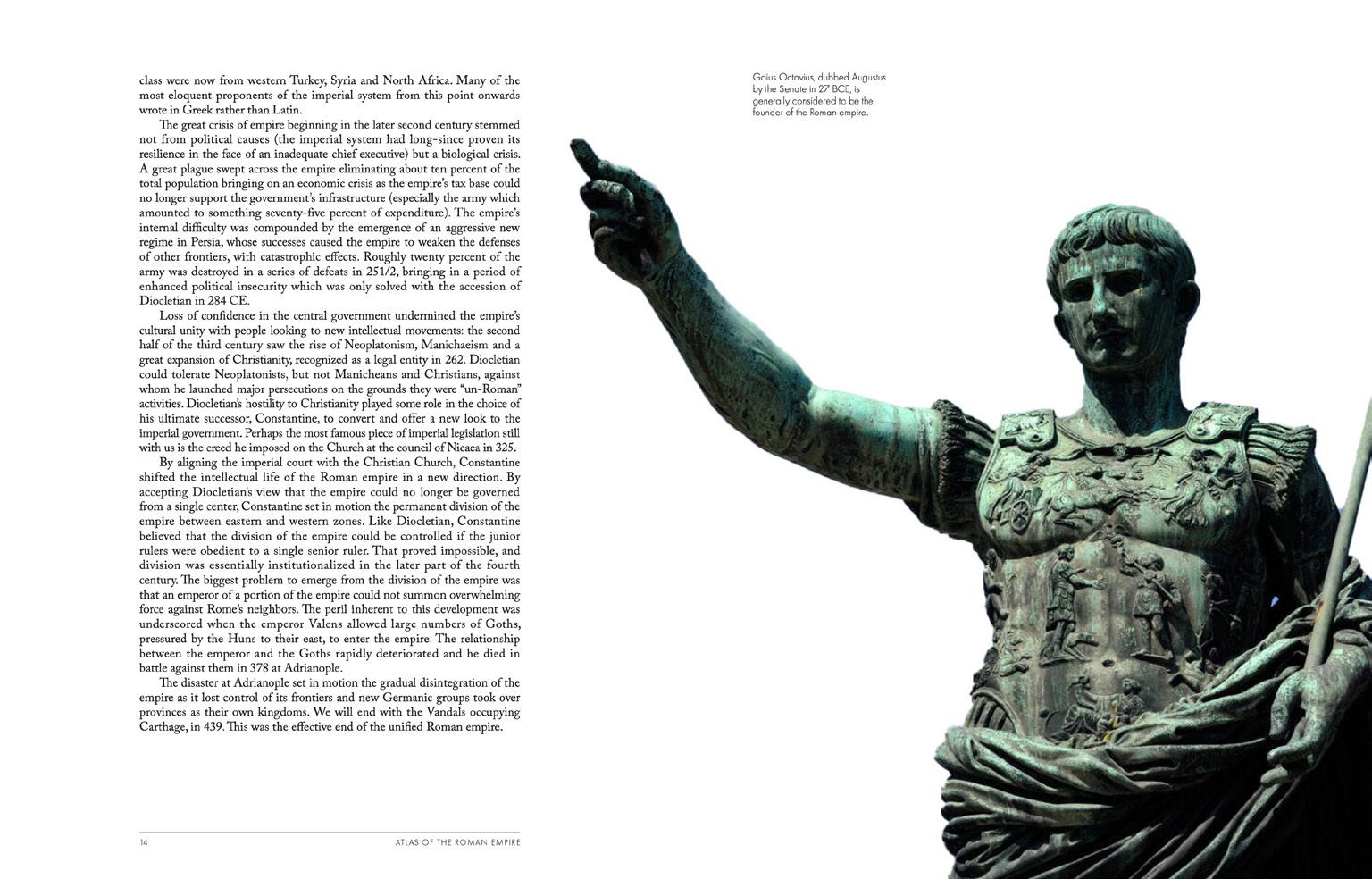 Written by one of the world’s leading academic experts, Atlas of the Roman Empire explores every aspect of the empire’s rise, apogee, and fall. Comprehensive political maps show the dynamic ebb and flow of conquest and resistance. Battle maps illustrate key victories and defeats, illuminating the tactics that made Rome so successful, as well as its errors and disasters. Also featured are stunning photographs of shields, swords, spears, and fortifications, illuminating the ancient arms race that decided the outcomes of battles and the fates of nations. Political and social life is not neglected, featuring surprisingly intimate portaits of life across the empire, from the emperor himself to subjects in far-flung provinces.