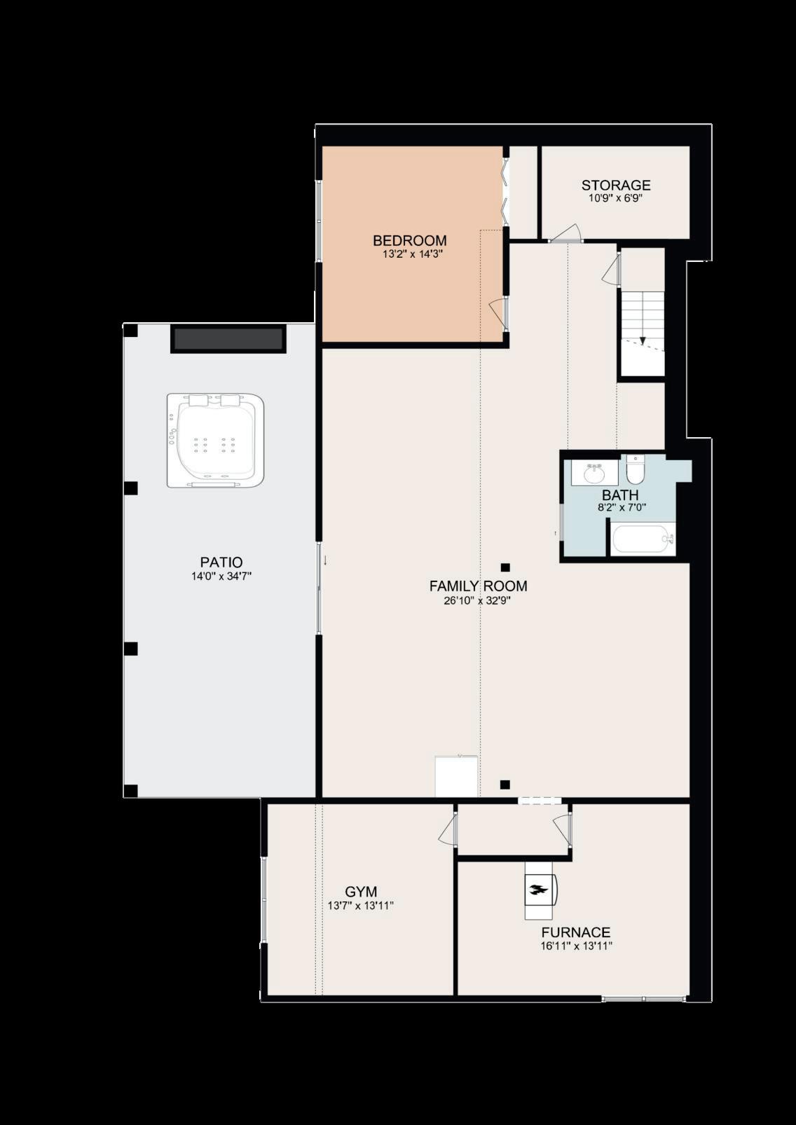 Private lower level with living area, bedroom, gym & hot tub
