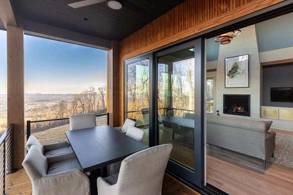 Casa Bonita's outdoor spaces seamlessly blend with nature, featuring expansive terraces for stunning mountain views and protective overhangs for shade. They enhance the mountain living experience, perfect for enjoying coffee or evening fires year-round.