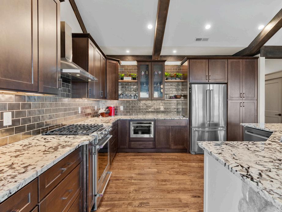 Gourmet kitchen featuring an oversized island and abundant storage