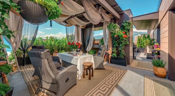 Luxurious and elegant penthouse for sale in the gated complex Flora Garden, with impressive views of Vitosha Mountain. Situated on two levels with an area of 336 sq m and a roof terrace of 210 sq m, the property has four bedrooms and four bathrooms. The interior is executed according to an individual project with materials of the highest class. The location offers quick access to the center and convenient public transport, and the complex provides 24-hour security, video surveillance, a playground and green areas.