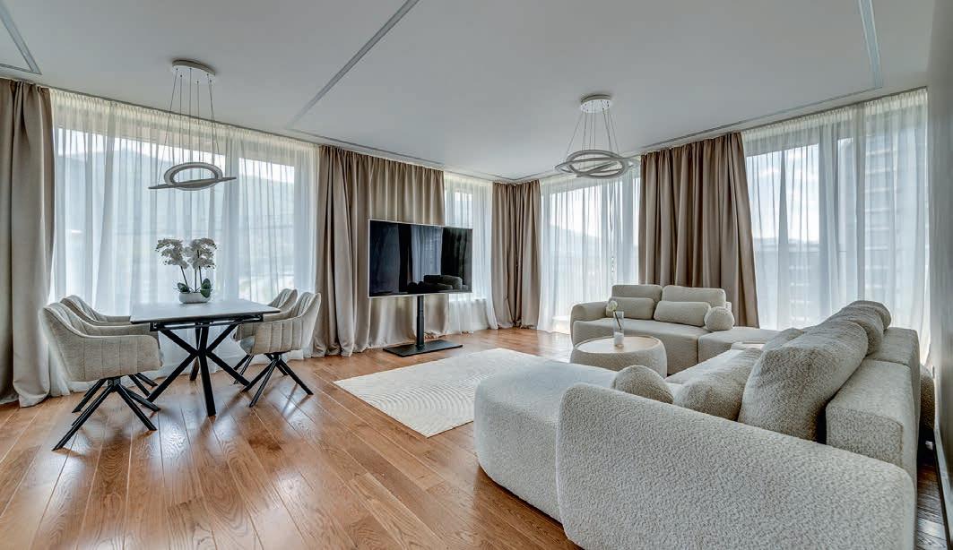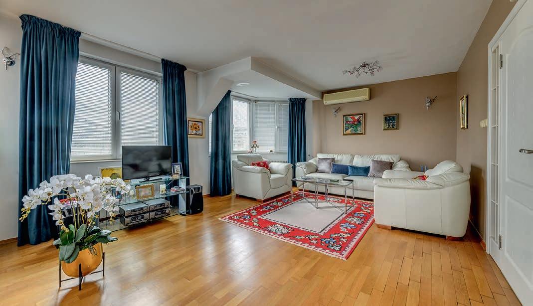 Exclusive apartment in Boyana district with a panoramic terrace and views of Vitosha Mountain. The interior impresses with furniture and lighting from leading brands such as Scavolini, Reflex, Minotti, Fontana Arte, Folio Doro and Mirage, and the multimedia experience is guaranteed by Bang & Olufsen TVs. The modern kitchen, air conditioning and underfloor heating provide complete comfort, while 24-hour security and video surveillance guarantee security and peace of mind.