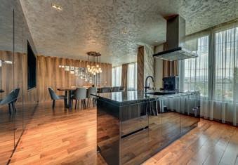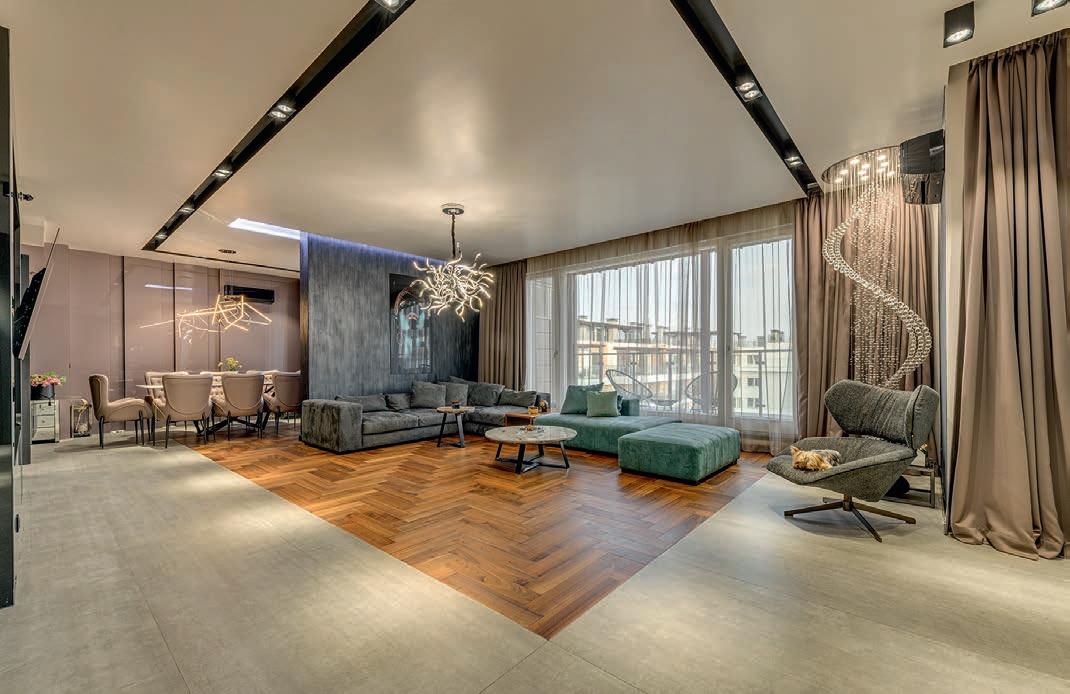 An impressive penthouse with a prime location next to Paradise Center – a combination of sophisticated style and uncompromising comfort. With an area of 501 sq.m., the apartment offers three spacious bedrooms, three bathrooms and panoramic terraces of 90 sq.m. with a captivating view of the city. The interior is finished with natural materials and highclass furnishings. The master bedroom is equipped with a built-in jacuzzi – an accent that complements the feeling of luxury.