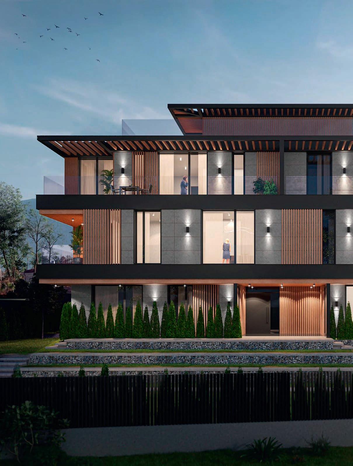 с 3 до 5 спални. Естествените материали и декоративни елементи изграждат timeless стил на фасадите, позволяващ съчетание с различни интериорни тенденции.