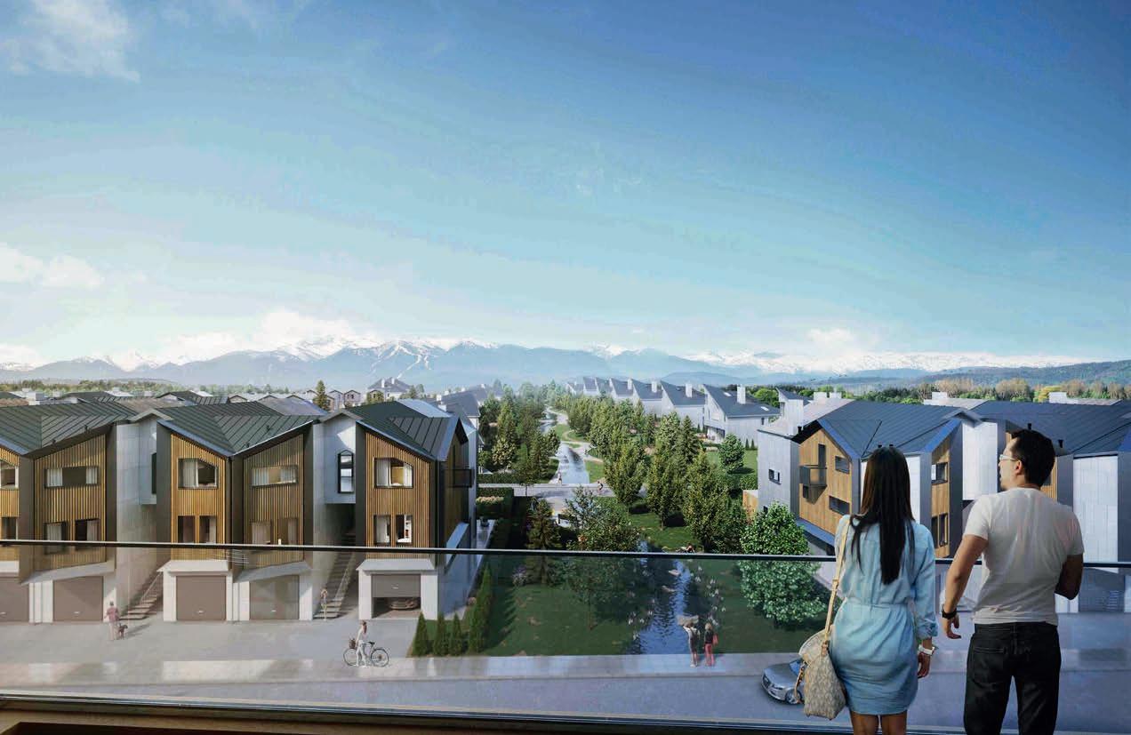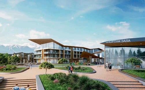 The SamElion complex is located at the foot of Rila, at 960 m above sea level, on the outskirts of the town of Samokov and in close proximity to the Iskar River. This location offers a southern exposure with a view of Rila and easy access to the winter resort of Borovets, which is 10 km away. The project creates modern conditions for sports and recovery, combined with the modern idea of a comfortable living environment. The complex consists of 7 two-story and 9 three-story single-family houses and 16 terraced houses, a multi-functional building that is a sports and rehabilitation center, a swimming pool with a spa complex, a hotel, a restaurant, a conference center and a specialized medical center.