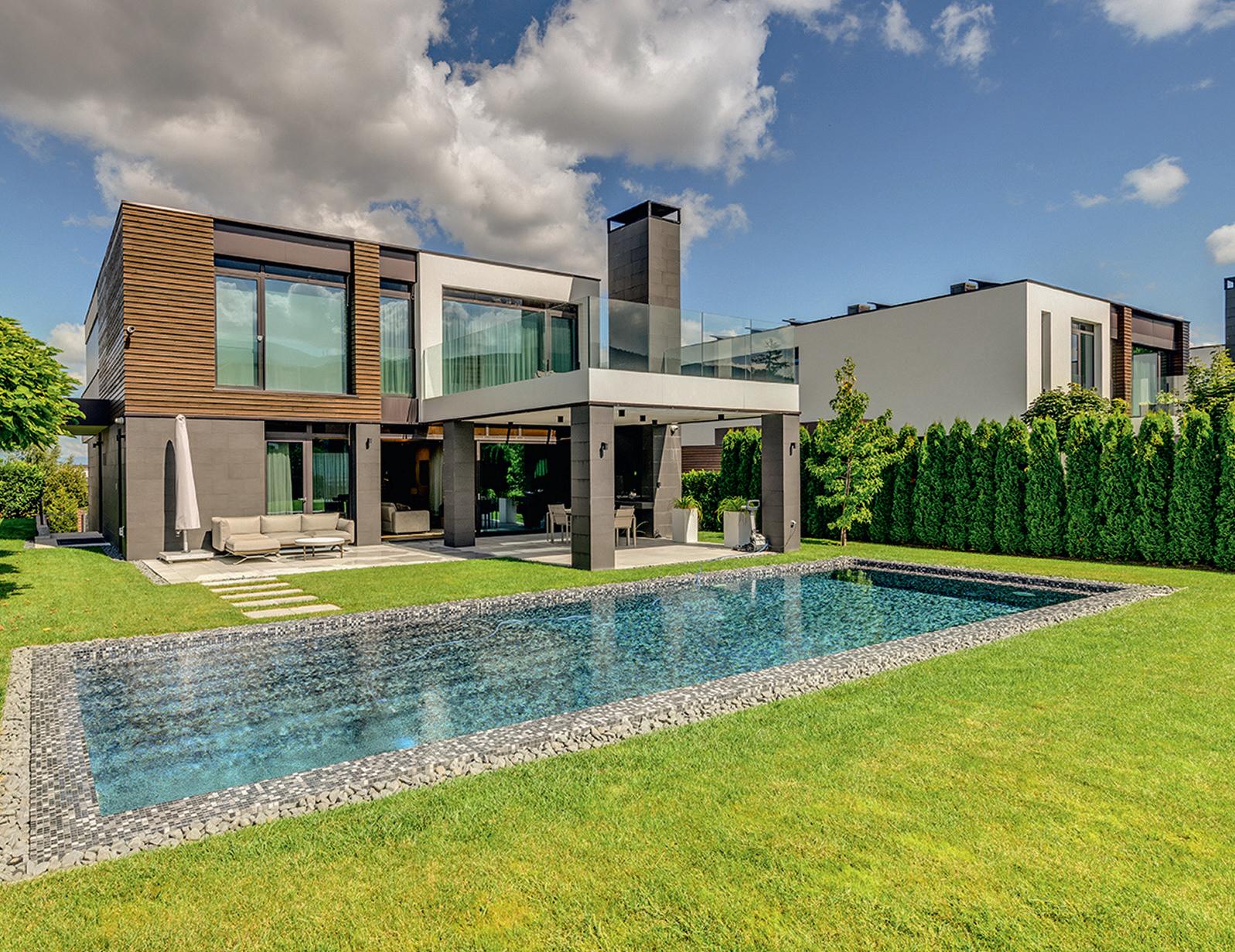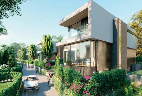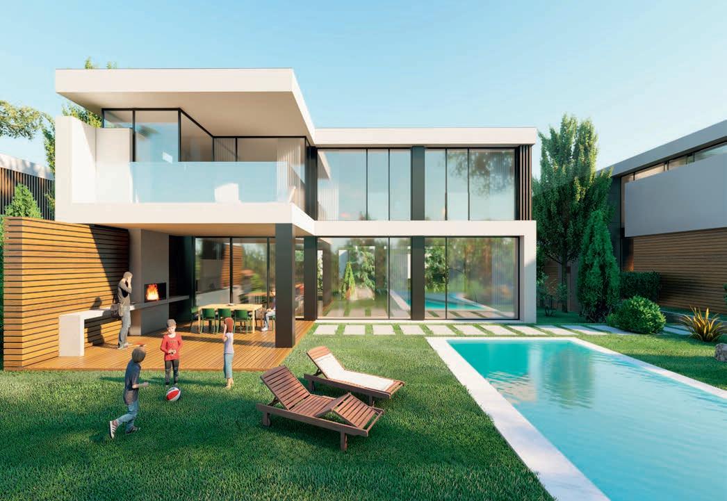 A gated residential complex of houses, located in an exclusive location, combining proximity to the city with the tranquility and beauty of nature. The houses are divided into two types – standalone and twin houses. They are built using the highest quality modern systems and materials, ensuring security, comfort, low operating costs, and durability over time. The glass walls of the living spaces and the green gardens seamlessly blend with the interior areas, creating a peaceful and functional living environment.