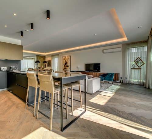 A stylish and elegant residential complex, inspired to rise above the dynamics of the city and capture its hectic pulse. Consisting of two tall, stylish buildings and two lower ones, the complex stands out for its individualism and uniqueness. The residences meet every demand for boutique apartments, designed to provide maximum comfort to its occupants. The building offers office space, shops, a pharmacy, dry cleaning, two cafeterias, a fitness center, underground parking spaces and garages.