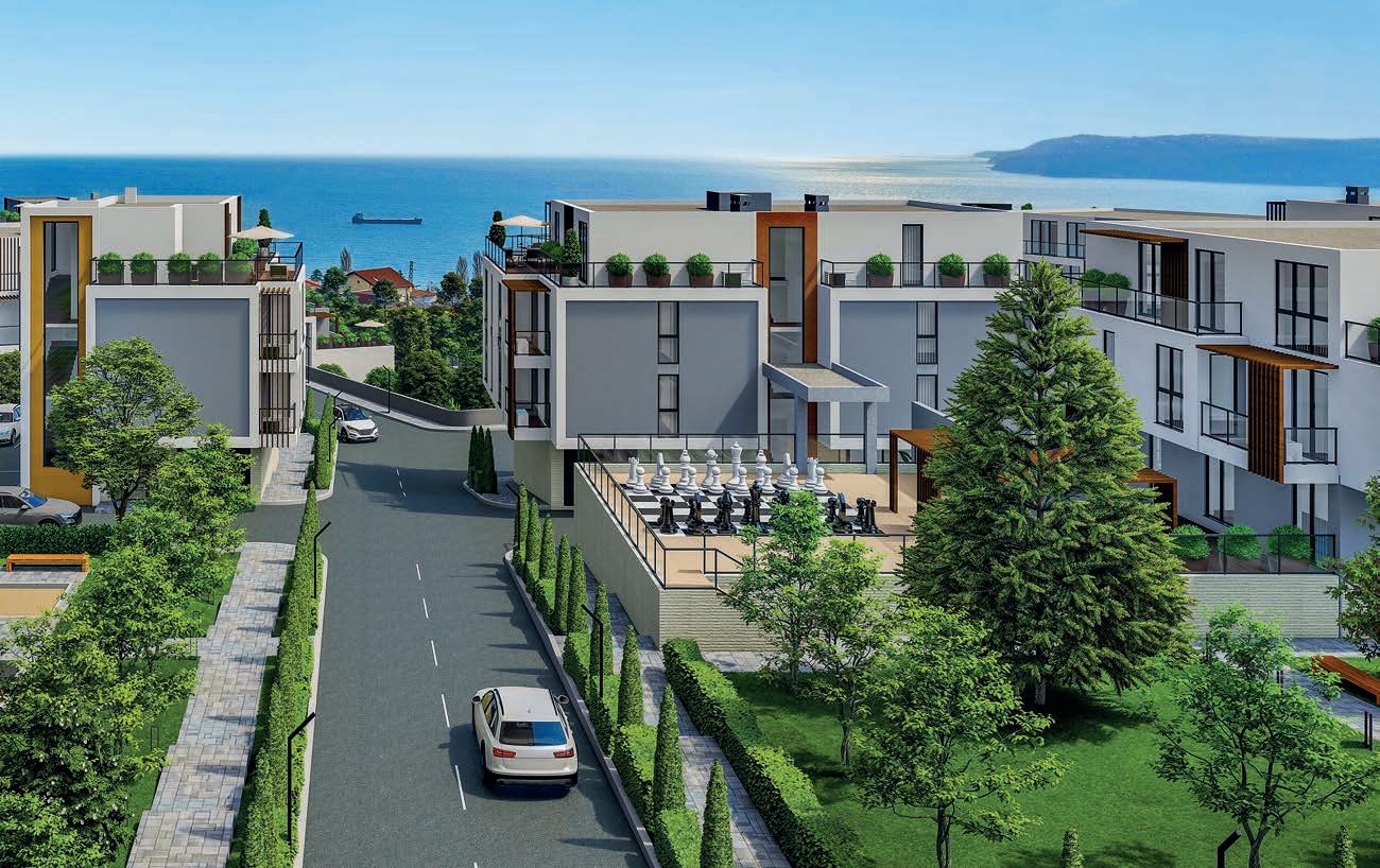 A luxurious gated residential complex of 28 modern single-family houses, located in the center of Sts. Constantine and Helena, Varna. The houses are designed in an environment that uniquely combines tranquility, coziness and magnetism. The facades are treated with natural materials in harmony with the surrounding nature. The apartments have verandas that can be transformed into a winter garden during the cold months, and the proximity to the sea makes the houses also suitable for a holiday property. Additional convenience is provided by the provided garages and parking spaces for each house.