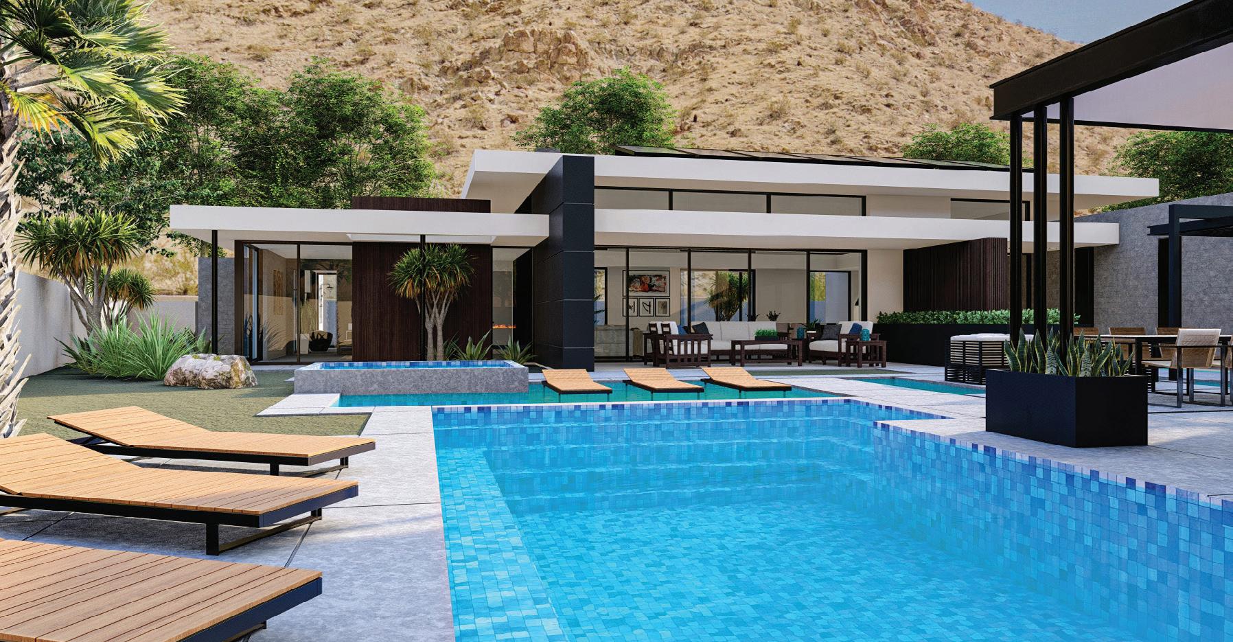 This modern home features over 4,200 square feet of living space, 4 bedrooms, 4.5 baths, and a pool house on a 25,839-square-foot lot. Palm Springs with western mountain views. $5,200,000. Dean Sipe, 760 668 5386