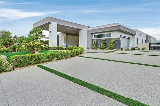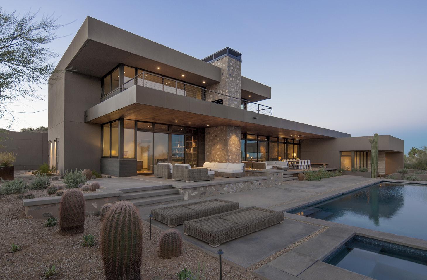 In Scottsdale, Arizona, where the Sonoran Desert is confronted by a metropolis of 5 million people, Marmol Radziner designed a desert home with a bold, modern theme while still respecting the fragile environment. The intent was to weave this elaborate winter retreat seamlessly into the fabric of the desert, heightening awareness of the rugged, saguaro cacti-studded landscape while integrating indoor and outdoor spaces. “We like to incorporate local building materials and techniques, which help connect the residence to nature, even in a contemporary design,” says Marmol. In the Scottsdale project, he cites surfaces inlaid with local stone — it is a recurring feature in both exterior and interior spaces — that reflect this approach.