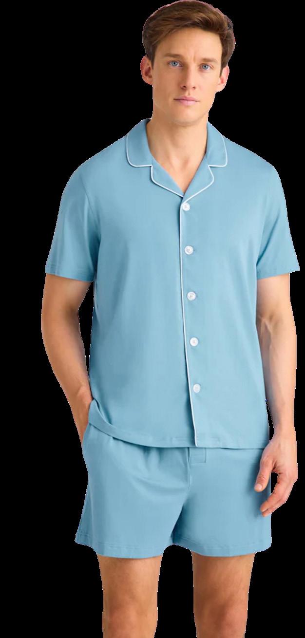 The list would not be complete without a classic baby blue pajama set. Ultra-soft micro modal meets thermostatic properties to help regulate body temperature, keeping the wearer perfectly snug. These lightweight pajamas are breathable, featuring short sleeves and short bottoms — wearable even on not-so-chilly nights.